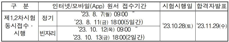 이번 2023년 시험은 34회 시험으로 그 시험일정을 아래에서 확인해 보겠습니다.