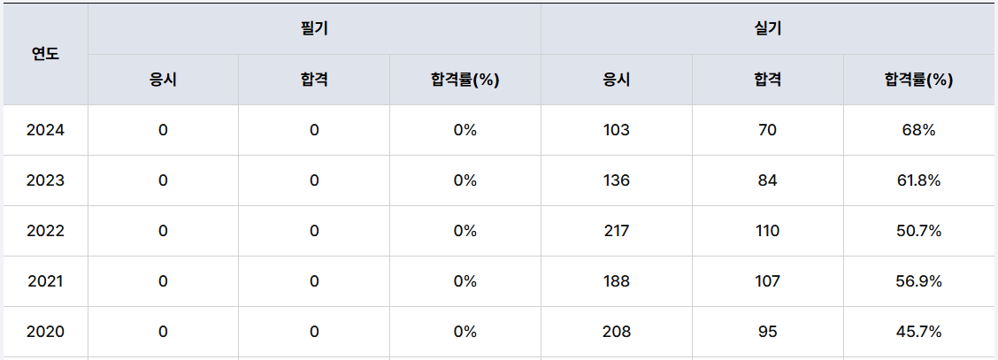 2024년에는 103명이 응시하고, 70명이 합격하여 68%의 합격률을 보였고,