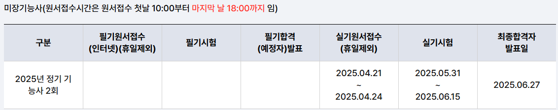 ✔ 실기원서접수 : 2025. 04. 21 ~ 04. 24