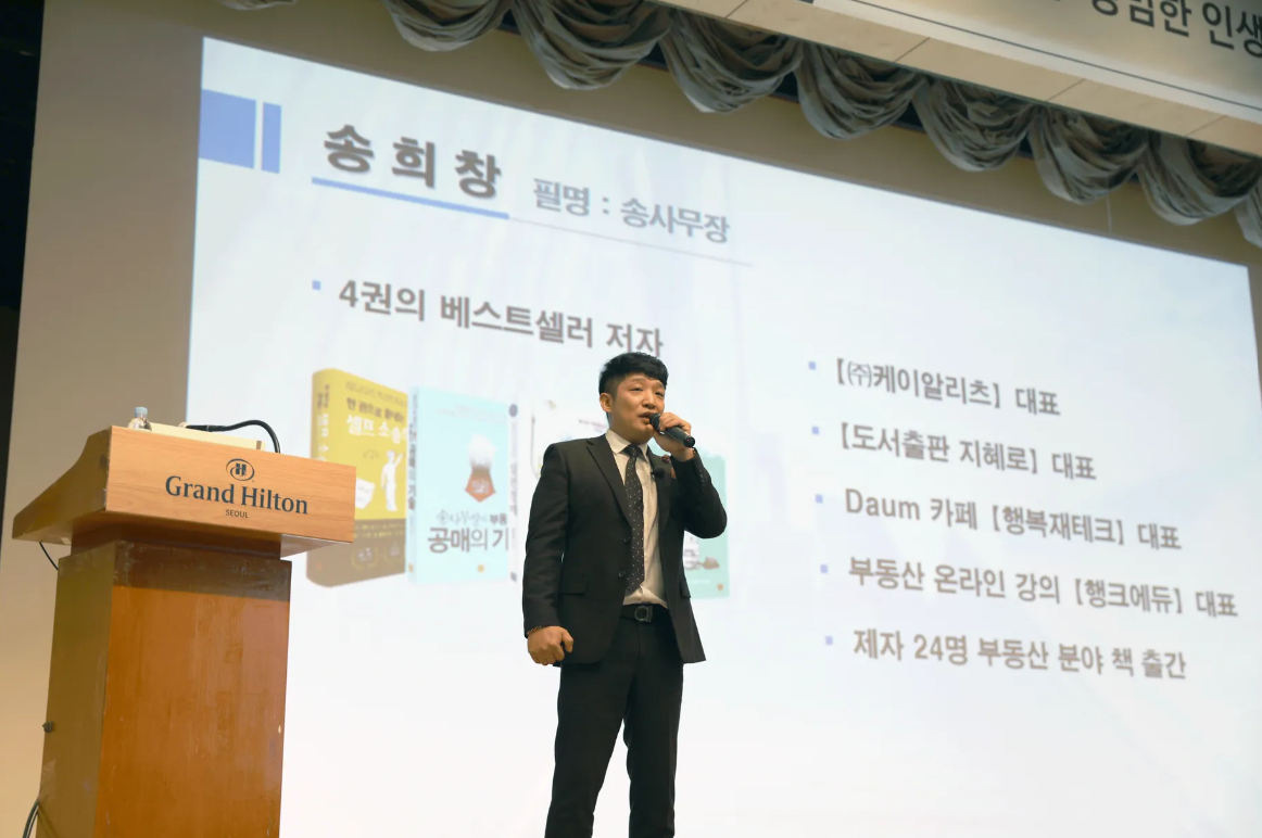 위 이력 외에도 송사무장님은 베스트셀러저자이며, 수영장, 축구장, 프리미엄독서실과 고시텔, 소호오피스 대표라고 해요. 부동산 전문가가 된다면 언젠가는 송사무장님처럼 많은 분야에서 활동할 수 있구나! 하는 생각이 들었어요.