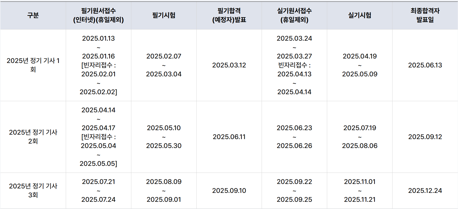 2025년 2회 시험의 필기원서접수는 4월 14일부터 4월 17일까지이며, 빈자리 접수기간은 5월 4일부터 5일까지입니다.