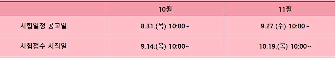 현재 자격시험은 10월과 11월이 있습니다.