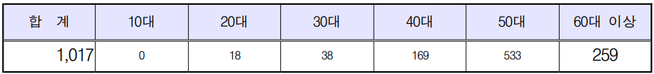 손해평가사 시험은 앞서 언급한 바와 같이 50~60대가 가장 많이 응시합니다. 50대는 533명이 응시, 60대는 다음으로 259명, 40대는 169명, 30대는 38명, 28대는 18명입니다.