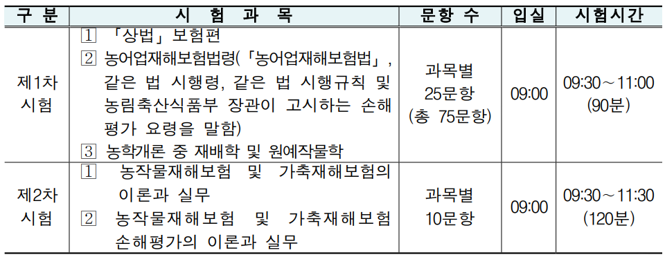 손해평가사 시험은 2차 시험이 어려워 시험준비 기간을 넉넉히 잡아야 합니다. 짧으면 6개월에서 길면 1년의 기간을 두고 시험을 준비하시길 바라겠습니다.