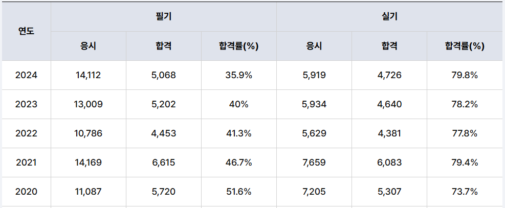 실기에 비해 필기합격률이 많이 낮았습니다.