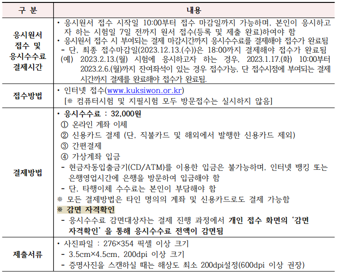 · 응시원서 접수기간 : 2023.11.1.(수)~2023.12.13.(수)