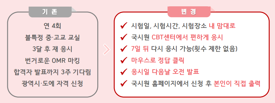 응시자가 쉽게 응시하도록 하여 응시자를 확대하고자 시험을 변경한 것 같습니다.