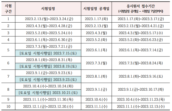 · 시험일정 공개일 : 2023.10.4.(수)