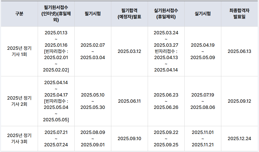 시험일정은 정기기사 2회, 3회 시험이 가능합니다.