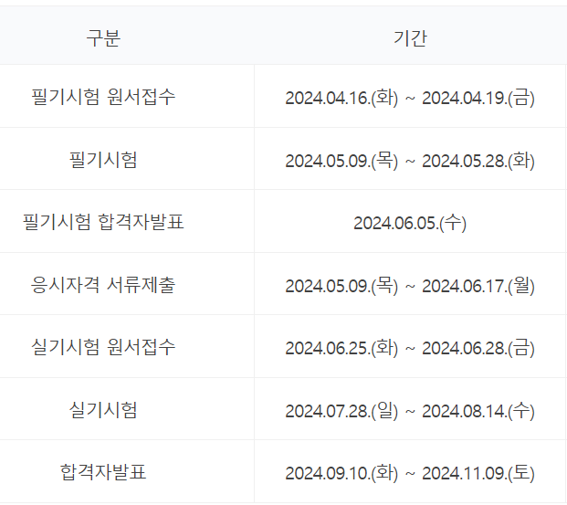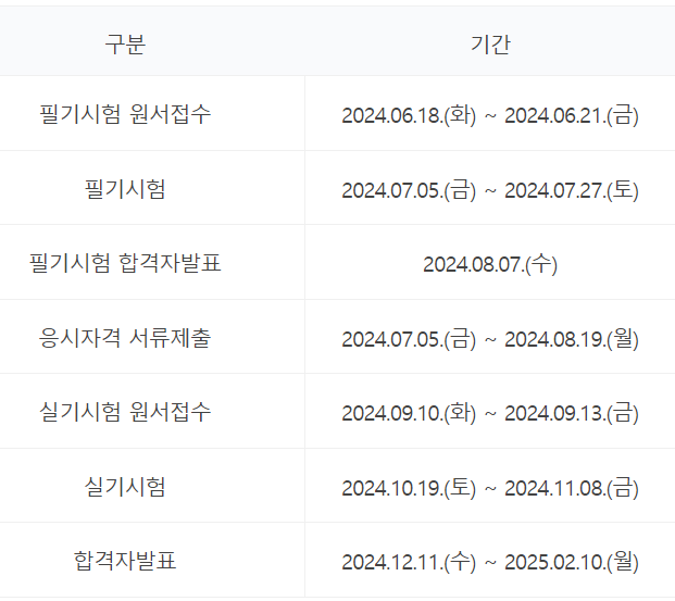 - 필기시험 : 100점을 만점으로 매 과목 40점 이상, 전 과목 평균 60점 이상