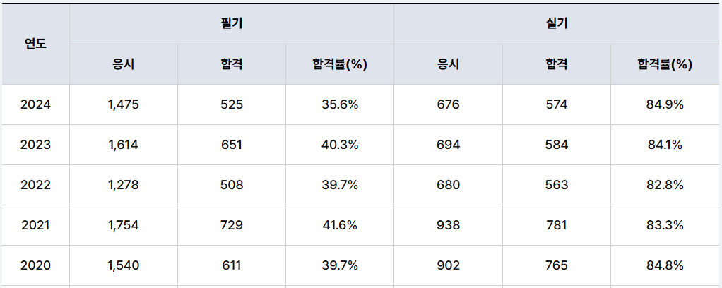 필기와 실기 시험의 응시자가 꾸준히 1,500명 가까이는 되는 것 같습니다.