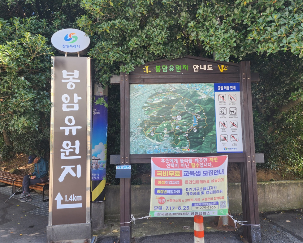 봉암수원지는 일제시대 마산에 거주하던 일본인과 일제 부역자들에게 물을 공급하기 위해 만들어진 것이라고 합니다. 당시 이 지역의 시민들이 물을 길어 먹었던 곳으로도 사용된 곳이라고 합니다. 수원지를 바로 오르기 전 운동기구가 있는 곳에 위치해 있으니 한 번 확인해 보고 가는 것도 재미있을 것 같습니다!