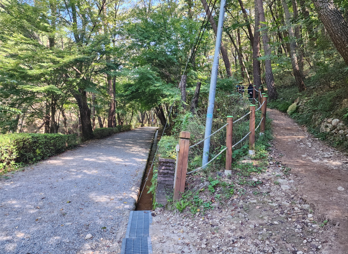 수원지까지 오르는길에는 2가지 길이 있는데, 사진으로 보았을 때, 왼쪽길은 오른쪽길보다 완만하기는 하나 수원지에 오르기 직전에 높은 돌계단 길이 있어 연령대가 낮거나 높은 분들은 오르기 어렵습니다. 하지만 오른쪽길은 다소 오르기 살짝 벅찰 수 있으나 천천히 오르면 어렵지 않게 입구에 도착할 수 있으니 참고 바랍니다.