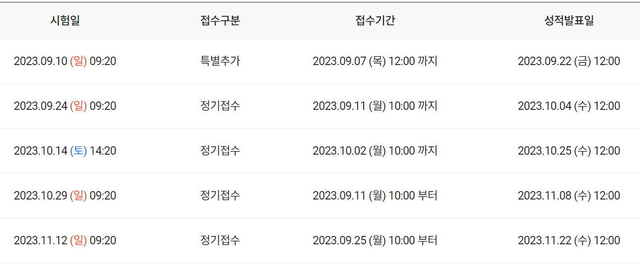 - 시험일시 : 2023. 10.14(토) 오전 9시 20분