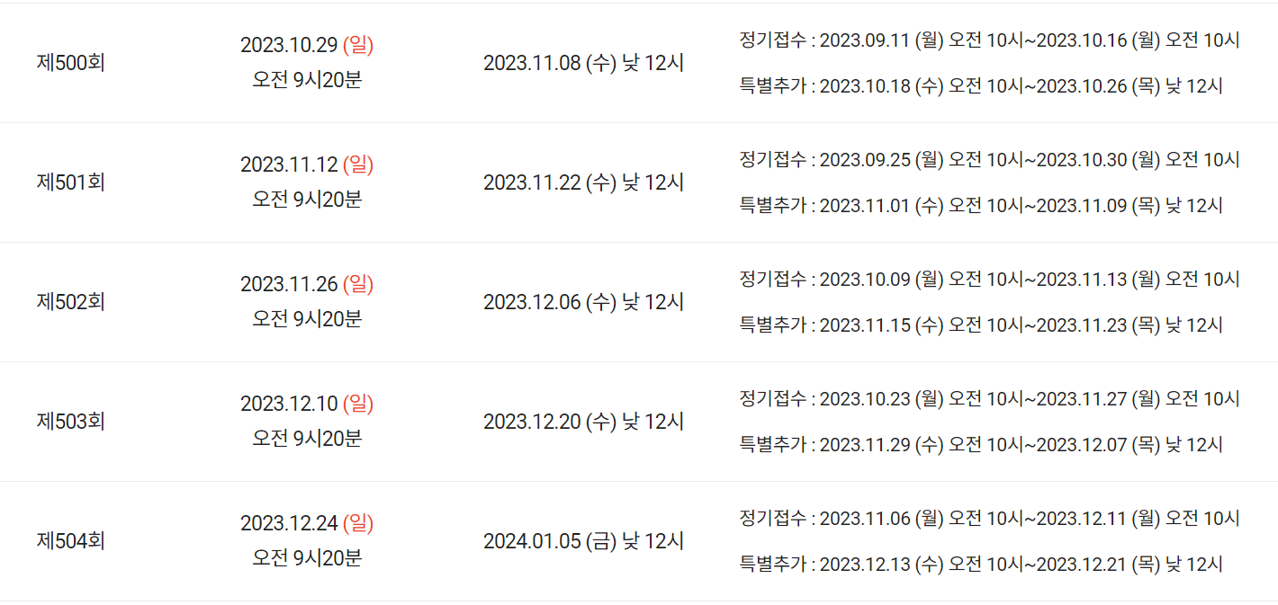 - 정기접수 : 2023.08.28 (월) 오전 10시~2023.10.02 (월) 오전 10시